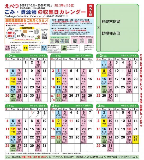 当マンションのゴミの「分別ルール」は、自治体(江別市)で定められています。ルールに従って住みよい環境を作りましょう。