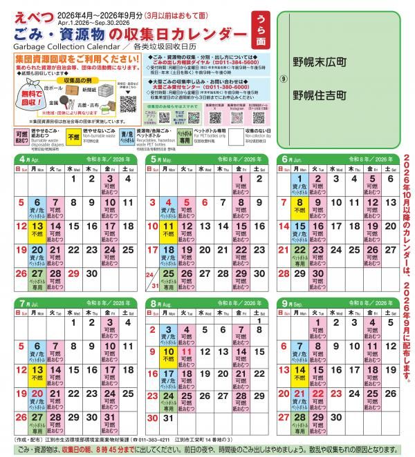 江別市では、燃やせるごみ、燃やせないごみの有料化を実施しており、江別市の「指定ごみ袋」に入れて出すか、袋に入らないごみは「ごみ処理券」をはって出すことになっています。